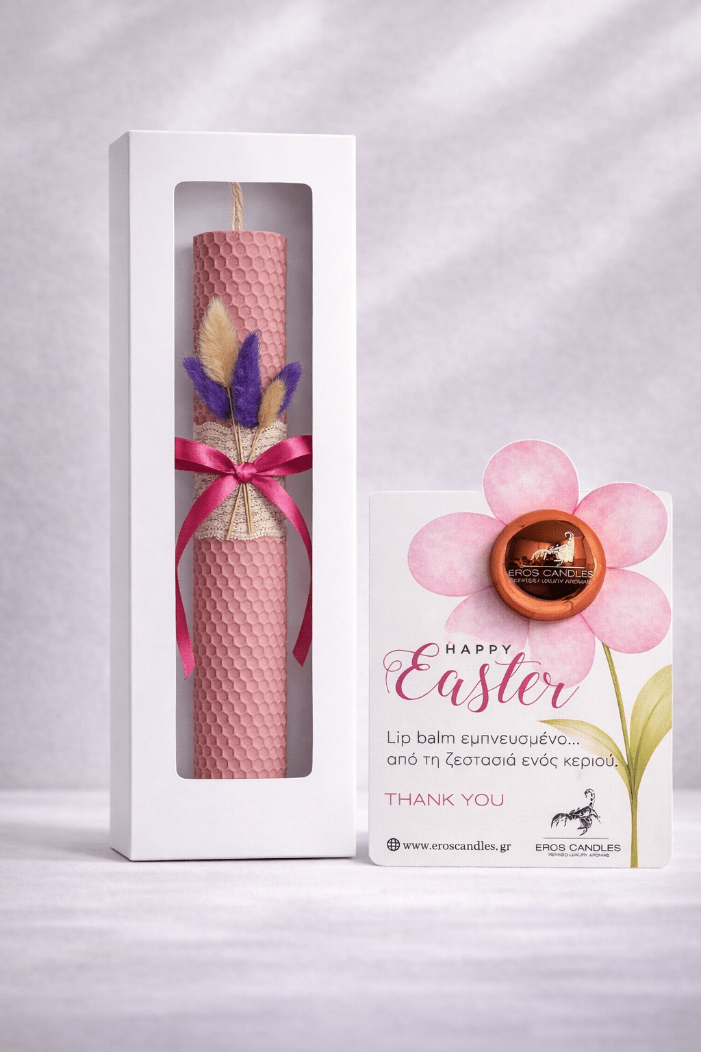 Ένα εκλεπτυσμένο σετ Πάσχα που συνδυάζει τη λαμπάδα Eros Ritual με ένα nourishing lip balm by Eros Candles.